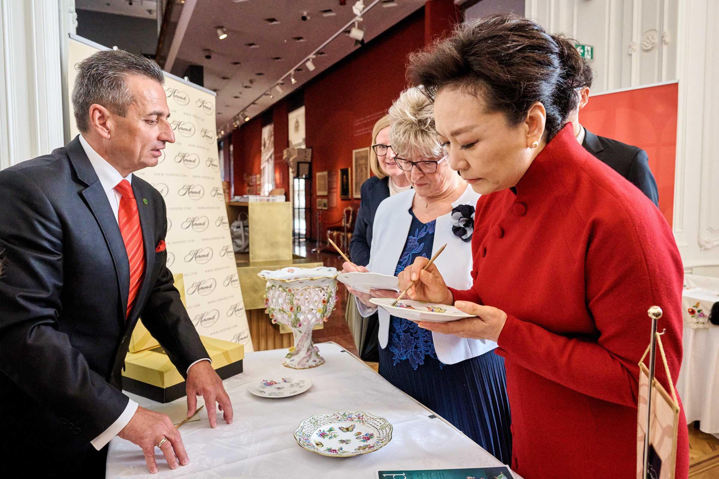 A kínai államfő házastársa, Peng Li-jüan Asszony, Zsuzsanna Asszony kíséretében látogatást tett a budai Szent István-teremben. A porcelán őshazájából érkező vendég elismeréssel nyilatkozott a Herendi porcelán alkotásokról. Mindkét ország kultúrájában meghatározó szerep jut a kézzel készítés művészetének, tradíciójának.